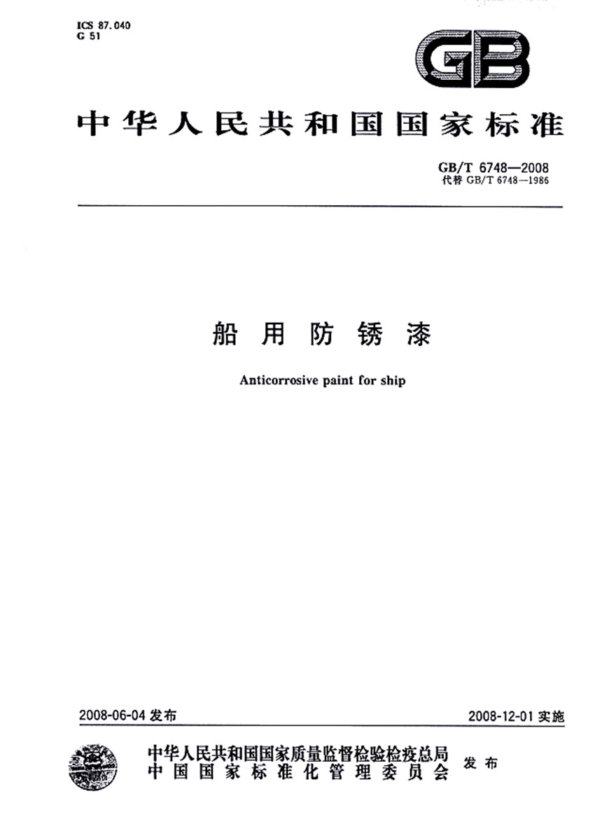 GB/T 6748-2008船用防銹漆國(guó)家標(biāo)準(zhǔn)