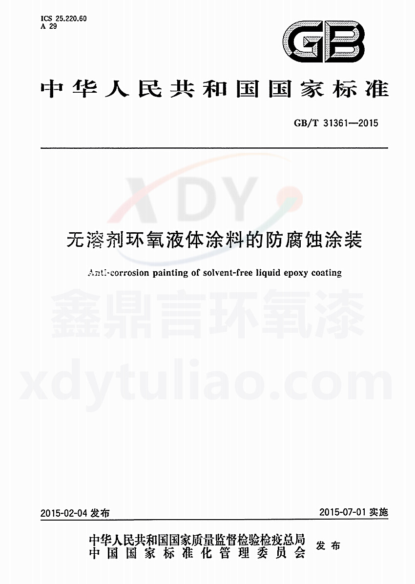 GB/T 31361-2015無溶劑環(huán)氧液體涂料的防腐蝕涂裝標準