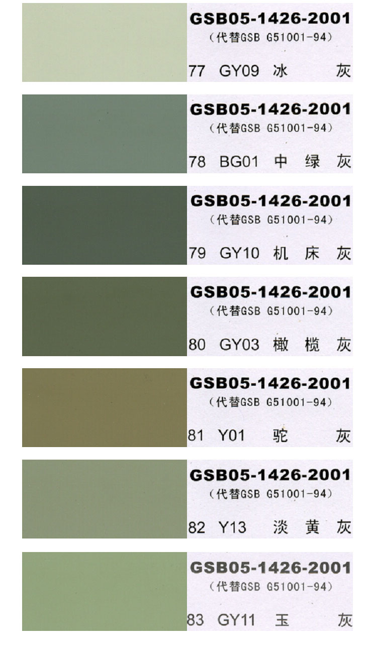 4、本國(guó)標(biāo)色卡(GSB05-1426-2001)適用于定做博凱防腐涂料廠生產(chǎn)的XDY防腐漆系列:氟碳漆、石墨烯漆、納米漆、聚氨酯漆、丙烯酸漆、環(huán)氧面漆、氯化橡膠漆、氯磺化聚乙烯漆、高氯化聚乙烯漆等可調(diào)色防腐漆品種。