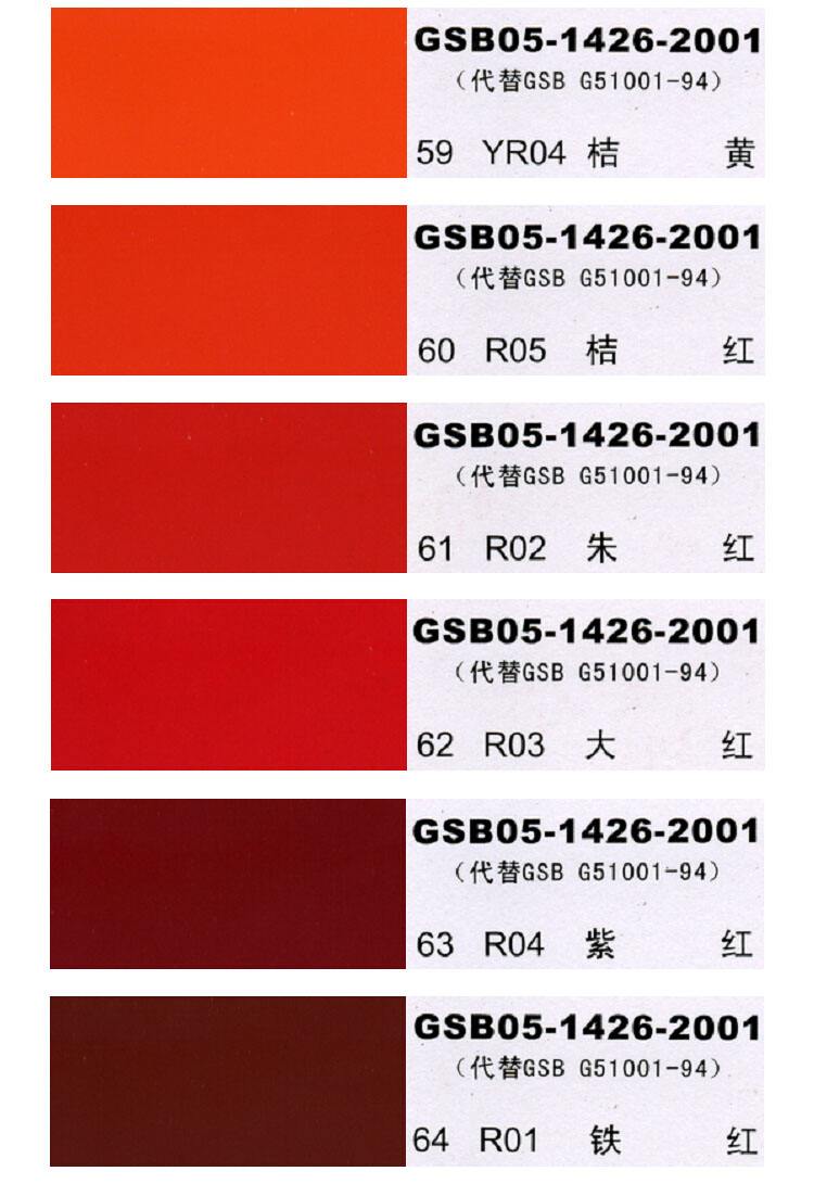 本色卡全稱為GSB05-1426-2001漆膜顏色標(biāo)準(zhǔn)樣卡,簡(jiǎn)稱國(guó)標(biāo)色卡,為國(guó)內(nèi)油漆涂料、機(jī)械設(shè)備、工程建筑行業(yè)常用的標(biāo)準(zhǔn)色卡之一。